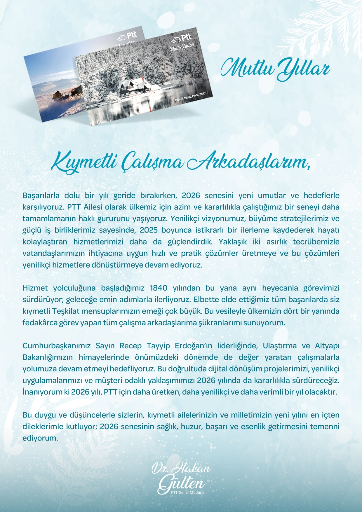 - Genel Müdürümüz Sayın Dr. Hakan GÜLTEN'in Yeni Yıl Mesajı1Ocak2026