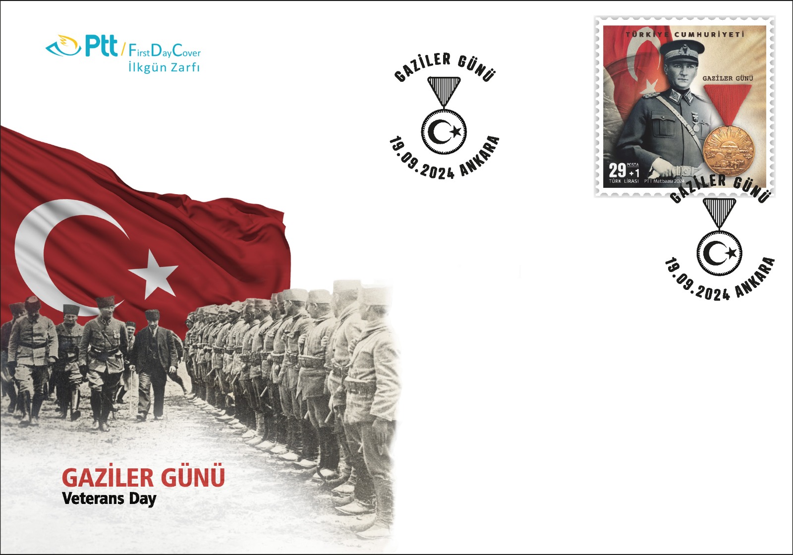 PTT AŞ tarafından “Gaziler Günü” konulu anma pulu ve ilkgün zarfı 19 Eylül 2024 tarihinde tedavüle sunuldu.